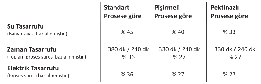 Sodanın kullanılmadığı sistemde koyu renkler için en fazla 2,2 g/l tampon karekterli Alkalin Cotton / Süper Soda kullanılır. Soda kullanılmadığı için ortam kirliliği azalmakla birlikte, 600 ppm’e kadar olan bikarbonat varlığında bile pH rahatlıkla 10,8-11,2 aralığında kalmaktadır.